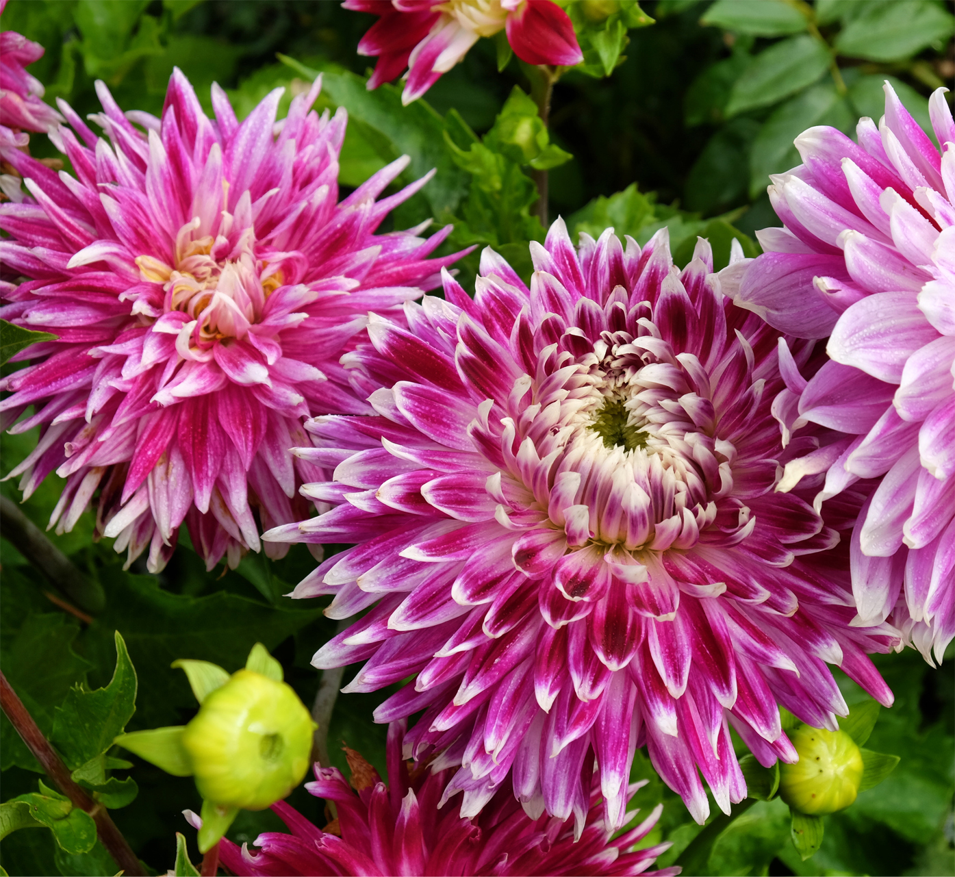 Cultivated and certified as 100% organic, Dahlia ‘Vancouver’ stands tall as a semi-cactus dinner plate dahlia. Boasting blue to violet to pinkish flower heads, it produces remarkably long, white-tipped petals that span nearly 15-20cm in diameter. This variety adds a touch of drama to the rear of borders, gracing gardens from July to the first frosts. ‘Vancouver’ epitomizes the definition of a voluminous dinner plate dahlia and pairs beautifully with Dahlia ‘Avignon.’