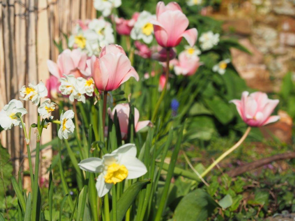 Collection of soft pink, yellow and white organic spring bulbs.
